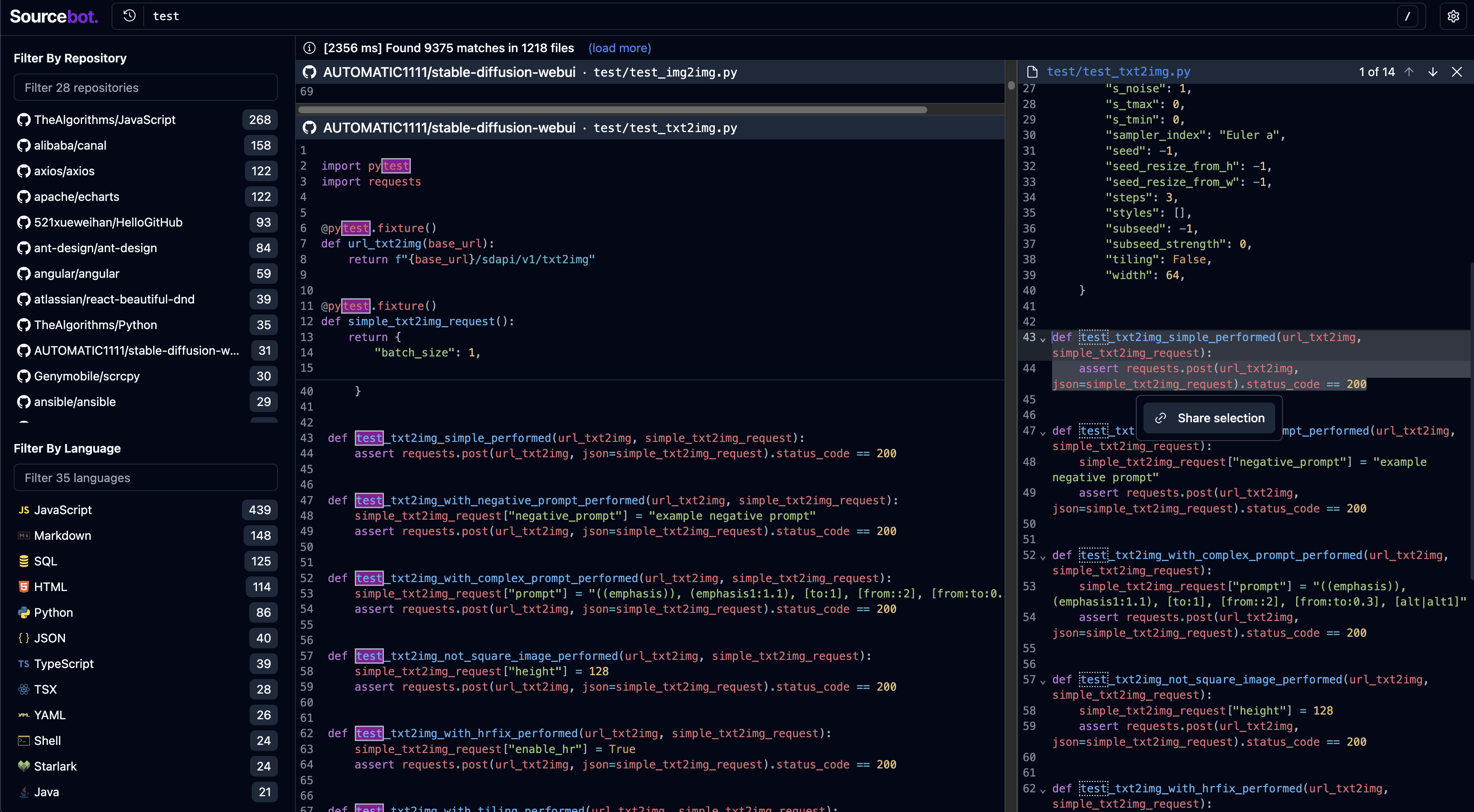 Ability to filter results by repository and/or language